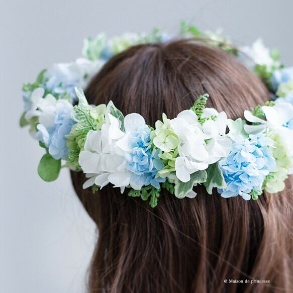 可愛らしさも美しさも両方叶えてくれるプリザーブドフラワーとアーティフィシャルフラワーを贅沢に使用したヘアドレス。