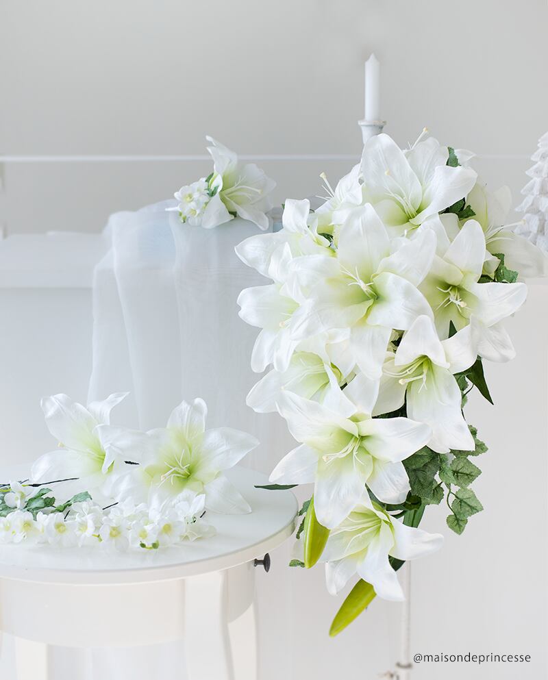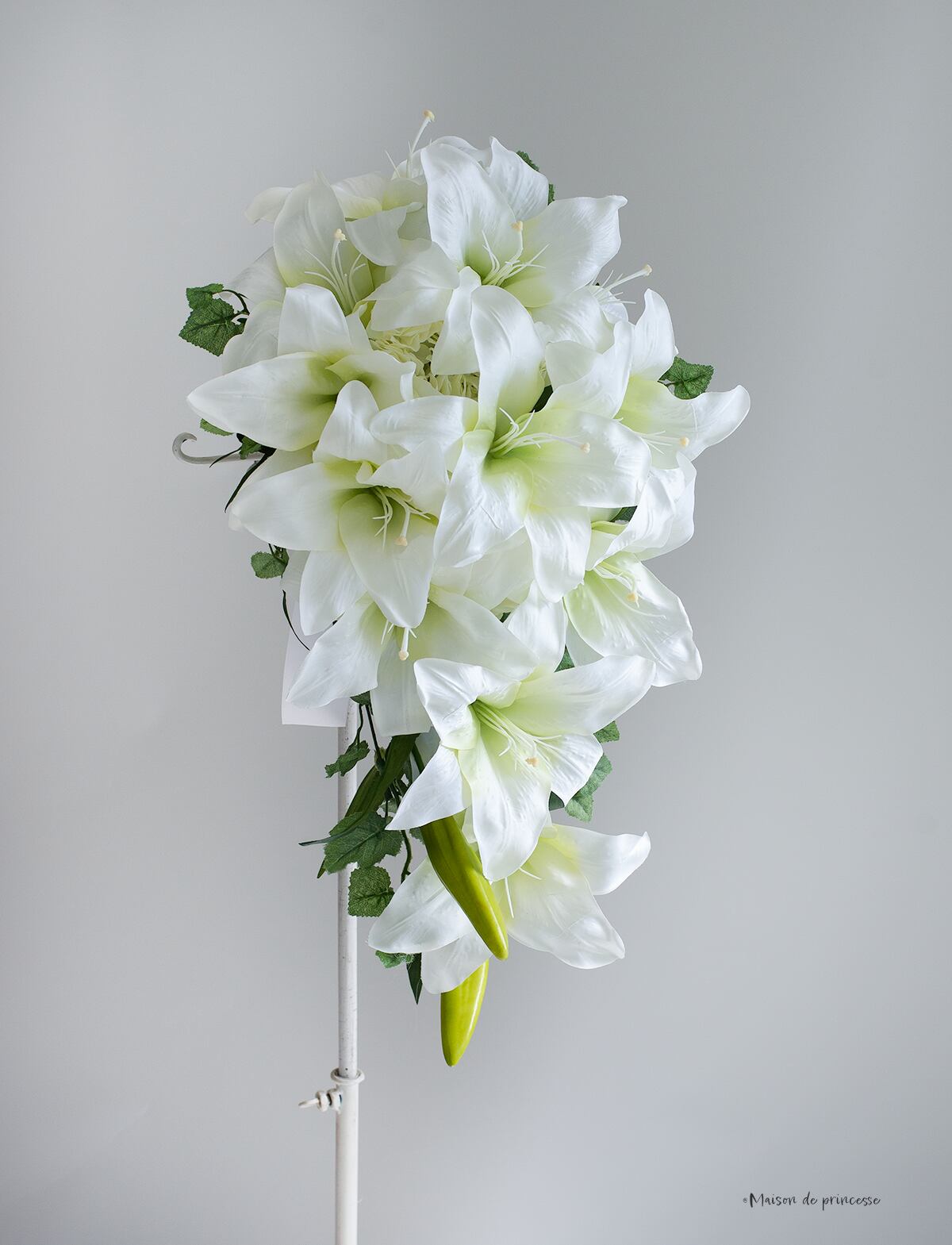 花嫁様・結婚式会場が一気に華やぐカサブランカのキャスケードブーケ。