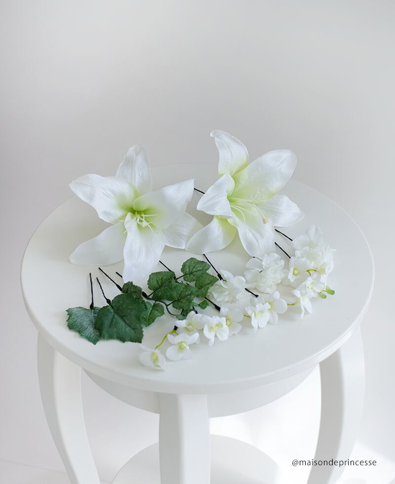 使用花材:カサブランカ(白)、紫陽花(白)、アイビー 、 デンファレ