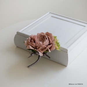 お祝いの日にふさわしい、優しい色味の大人のナチュラルコサージュ。