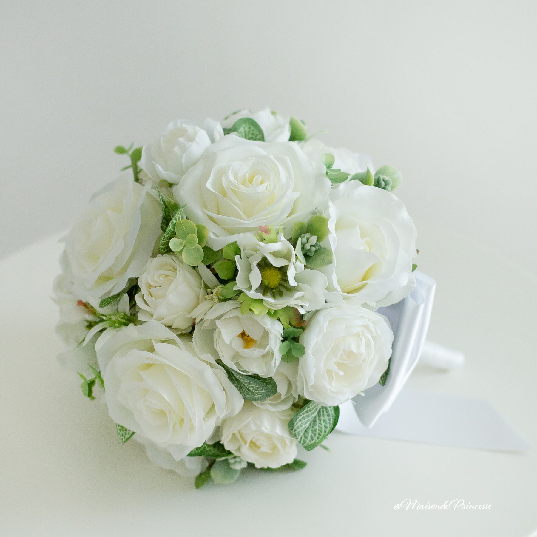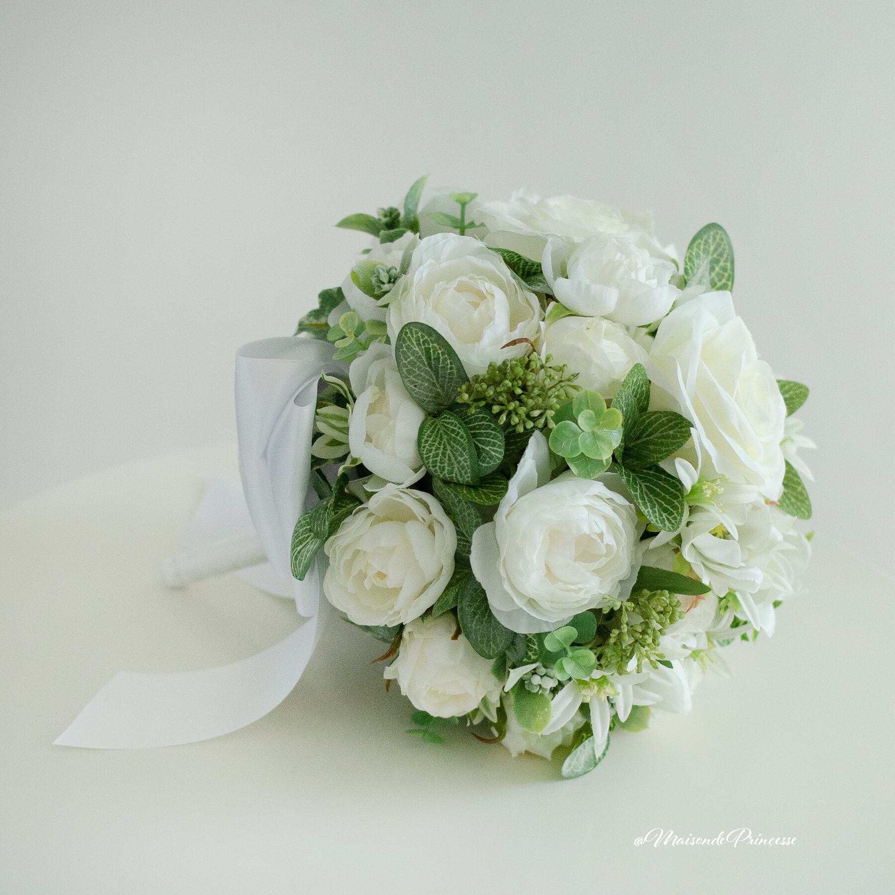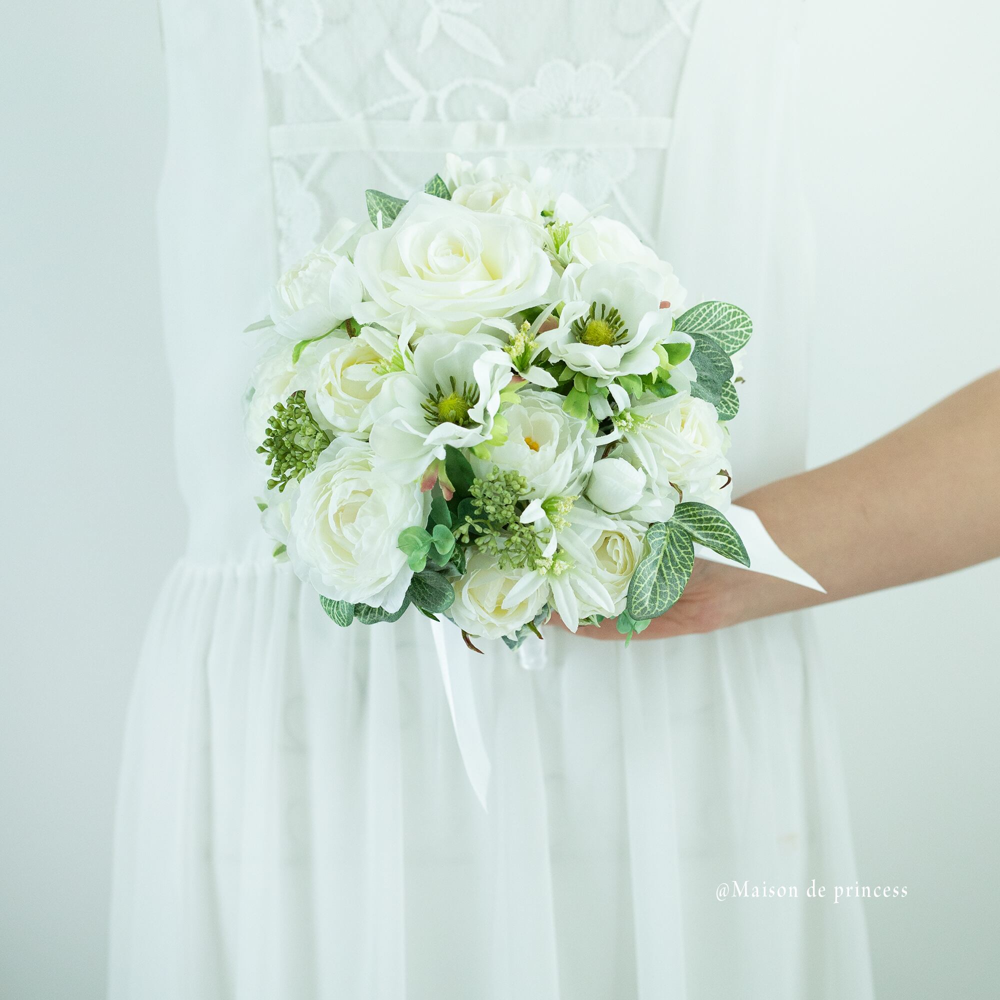純白のドレスに似合う、正統派ウェディングブーケ。