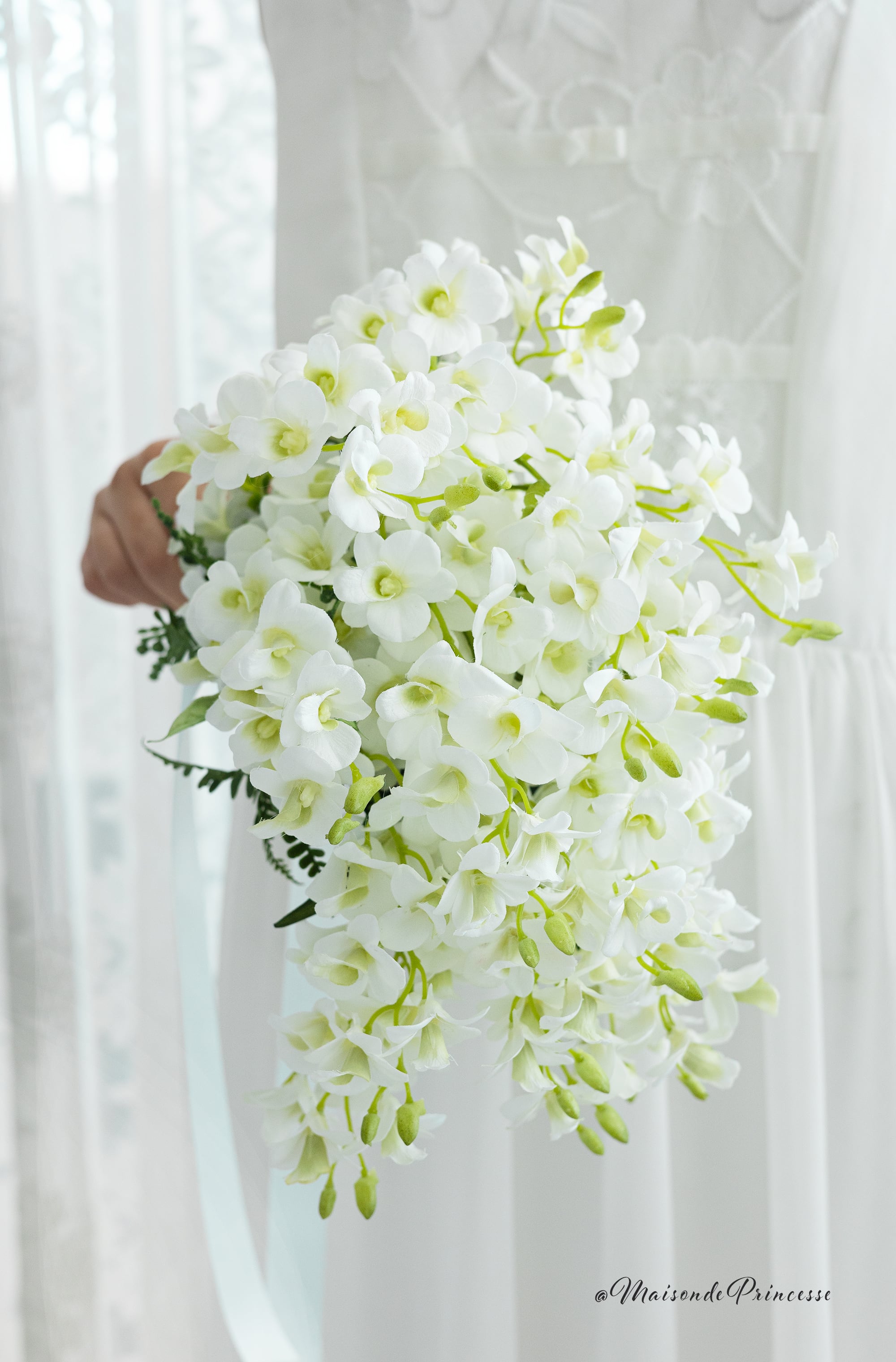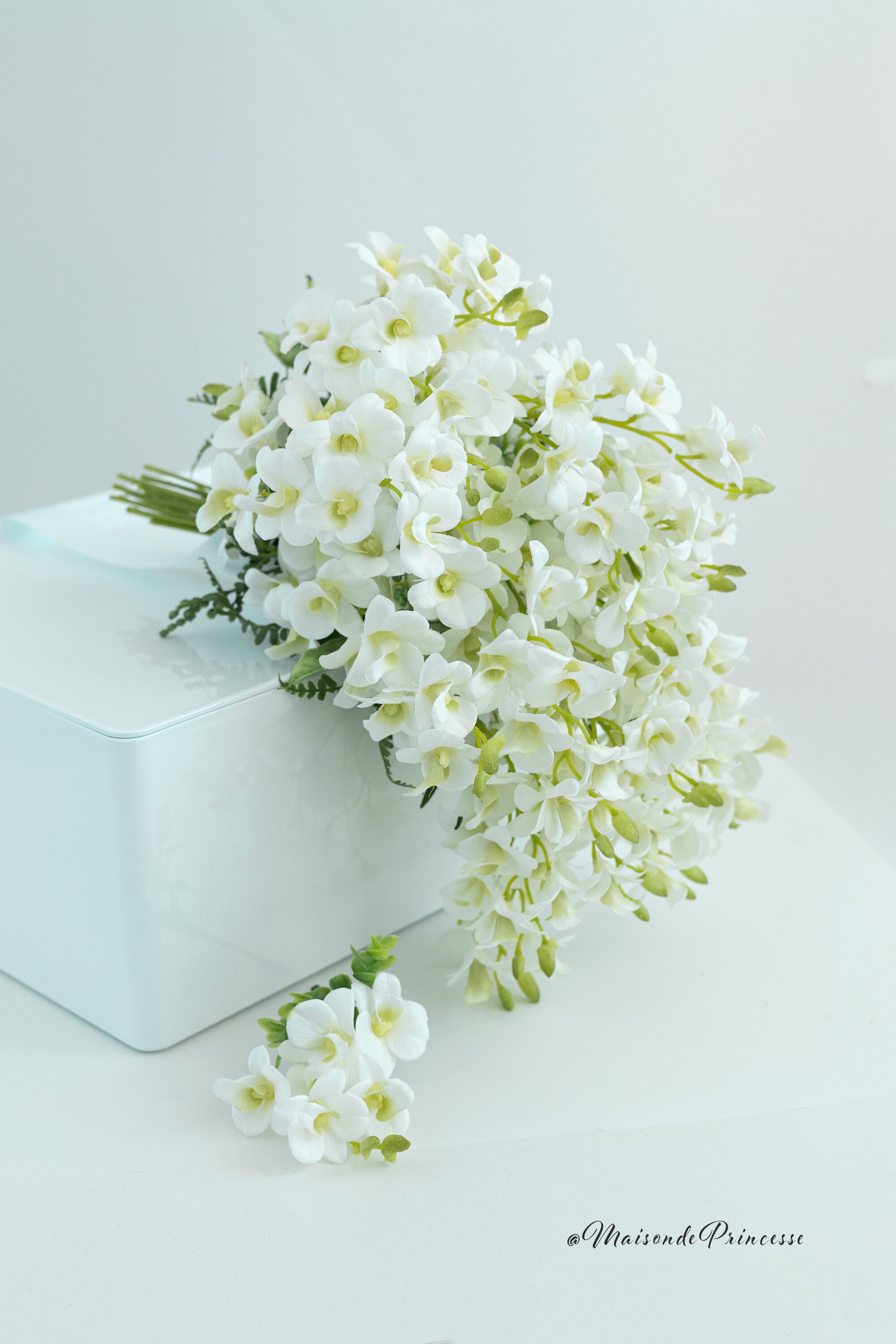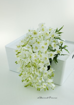 ウェディングで選ばれる続けるお花、美しいラインのデンファレのみを贅沢にたっぷりと使用いたしました。