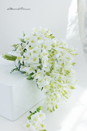 純白のドレスに似合う、正統派ウェディングブーケ。